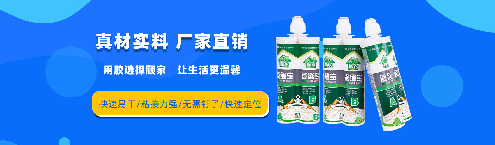 產品展示源顧家膠粘劑新國標草坪膠、萬能膠、免釘膠、結構膠、封邊膠、玻璃膠、填縫劑